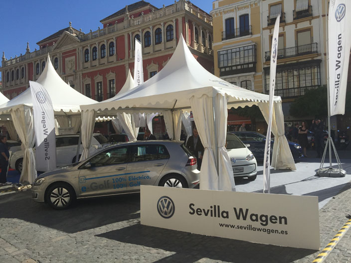 Sevilla Wagen Volkswagen ha presentado hoy sus modelos eléctricos e-up! y e-Golf en el I Roadshow Eléctricos de Sevilla que se celebra en la Plaza San Francisco, organizado por el Clúster del Transporte Limpio y Vehículo Eléctrico de Sevilla (CVE) y por la Federación de Empresarios del Metal (Fedeme).